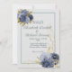 Este belo Convite de Casamento apresenta dois Buquês Azuis Dusty, prigs de Folha Dourada Faux e um texto monograma personalizável. Usando a personalização de Zazzle para esta modelo, você pode inserir seus próprios detalhes de casamento. O estilo, a cor e o tamanho da fonte também são personalizáveis. Marquei as modelos adequadas para ajudá-lo nesta personalização. Aproveite
