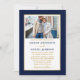 Marinho de Foto Mínimo Moderno Elegante, Blue e White Wedding Convite. Dourado quadro. Dourado Script.