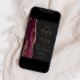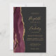 A borda esquerda deste elegante convite de casamento moderno mostra uma borda de água borrifada, cortada com falsa brilho dourado. O texto personalizável combina manuscritos dourados, copperplate e fontes itálicas em um fundo de cinza de carvão escuro. O lado inverso apresenta uma burgundy e uma design de agata dourada.