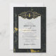 Um elegante e na moda com o Art Deco inspirou monograma e mármore preto e dourado ao fundo. Um design de estilo vintage nouveau ideal com os elementos de 1920. A combinação das cores preto e dourado cria um estilo sofisticado, modesto e chic. Design de convite para casamento elegante com elementos modernos. A configuração simples da tipografia lhe dá um estilo distinto. Também estão disponíveis itens de papelaria de casamento e outros formatos de convite de casamento.