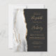 A borda esquerda deste elegante convite de casamento moderno apresenta uma cinza e uma aquarela branca, aparada com falsa brilho dourado. O texto personalizável combina manuscrito dourado, fontes em copperplate e itálico em um fundo preto de slate. O verso apresenta uma cinza correspondente, design de agate branco e ouro.