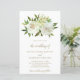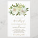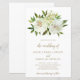 Elegante convite de casamento floral com flores pintadas a aquarelas em tons neutros de marfim, branco e champanhe junto com um pouco de verde. Abaixo estão seus detalhes de casamento em tom dourado com palavras sotaques em roteiro. Este sofisticado convite de casamento é excelente para um casamento de primavera ou verão.