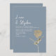 Este Dourado Convite para Casamento de Rosa Elegante Dusty combina sofisticação e charme minimalista, apresentando uma delicada ilustração de rosa de ouro contra um fundo azul macio e empoeirado. O texto elegante acrescenta um toque de romance, fazer perfeito para casais que buscam um convite refinado e na moda para o seu casamento no inverno ou no início da primavera.