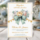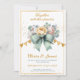 Este elegante convite de casamento apresenta um buquê floral pastel amarrado com um arco verde macio, acentuado por ouro confetti e bunting festivo. Um design romântico e eterno, perfeito para casais planejando um casamento na moda, clássico ou inspirado no jardim. Celebre seu dia especial com este sofisticado trabalho de arte floral.