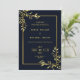 Estes marinhos glamourosos convites de casamento azuis apresentam um galho floral ouro nos cantos para cima e para baixo, uma borda quadrada de ouro dando-lhe um olhar único e moderno no centro. Espero que tenha adorado.