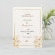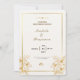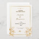 Este sofisticado convite de casamento apresenta um design eterno que combina elegância clássica com estilo moderno. O esquema do ouro e da cor branca é acentuado por intrincadas ilustrações florais, criando uma atmosfera luxuosa e romântica. O convite é emperrado por uma moldura de ouro, acrescentando um toque de opulência, enquanto os dois anéis encravados simbolizam a união de dois corações. Perfeito para uma cerimônia formal de casamento, este convite inclui espaço para todos os detalhes essenciais: os nomes do casal, a data, hora e local da cerimônia. Personalize este convite com suas próprias informações para criar um anúncio memorável para seu dia especial. Peça agora e deixe seus convidados saberem sobre seus futuros núpcias em estilo!