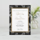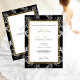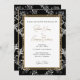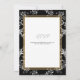 Este Convite para Casamento Dourado e Negro apresenta um design gráfico branco sobre um fundo preto com bordas douradas duplas. O texto inclui: Nomes da noiva e do noivo, data de casamento, hora, local e recepção a seguir, em fundo branco. O texto do lado inverso inclui: RSVP e seus Detalhes de Resposta. Para personalizar, basta inserir todos os seus detalhes no nosso modelo fácil, substituindo o texto de exemplo. Certifique-se de ver toda a Coleção de Casamentos Dourados e Pretos para cartões e acessórios correspondentes.