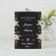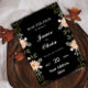 Celebre seu dia especial com este luxuoso convite de casamento floral preto e ouro. Com designs intrincadas de canto do ouro e delicadas flores de pêssego, ele cria uma aparência sofisticada e eterno. A fonte elegante do script destaca os nomes do casal, enquanto o texto em negrito adiciona clareza a detalhes importantes como data e local. Perfeito para casais que buscam elegância clássica e moderna em sua papelaria de casamento.