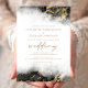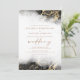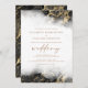 Este elegante convite de casamento apresenta um design de borda de aquarela negra na imitação de mármore veinado com folha de ouro falsa, desaparecendo gradualmente no fundo branco. A palavra "casamento" aparece em escrita manuscrita dourada, com o texto remanescente em maiúsculas de serifa douradas. O padrão de mármore preto e dourado é repetido na parte traseira da placa.
