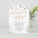 Dreamy encontra-se rústico com este convite de casamento simples e elegante do eucalipto com textura falsa de folha de ouro rosa! Adicione o seu próprio texto ao modelo. Este convite é um item correspondente na faixa de eucaliptos 'Anne & Oliver' - verifique a faixa de cheios na nossa loja!