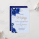 Este maravilhoso convite de casamento floral azul é perfeito para qualquer estação, incluindo o inverno! O canto superior esquerdo tem um belo buquê floral azul de aquarela e espiral dourada. O fundo esquerdo tem um arranjo floral azul equivalente. Uma borda sutil de confete de ouro cobrir as bordas, incluindo as flores. Seu texto personalizado está em ouro azul e escuro correspondente no centro, e todo o texto é facilmente personalizado. Tudo é colocado sobre um fundo azul pálido. A parte de trás do convite está combinando azul escuro com a mesma camada de confete ouro no topo. Dramático e memorável!