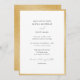 O convite de casamento clássico minimalista do guião dourado, personalizado com as suas informações. Digite a ferramenta Zazzle design para fazer mudanças adicionais no design. Certifique-se de comparar os diferentes tipos de papel para selecionar sua textura favorita.