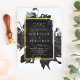 Vintage Bohemian Boho Wedding temed. Rosas pretos antigos e fundo opaco de cobertura marinho com um quadro Dourado. Lindas cores preto/cinza/branco escuro. Também disponível em opções de prata e rosa dourado.