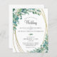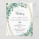 Convites de casamento botânico modernos e elegantes impressos em papel leve, ideais para orçamentos conservadores e/ou entrega manual a convidados com eucalipto verde, um falso quadro oval brilhante dourado e texto de cinza de carvão suave. Entre em contato com o designer por meio do Zazzle Chat ou makeitaboutyoustore@gmail.com se você quiser que este design seja modificado, em outro produto ou em itens de coordenação.
