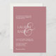 Minimalista & chic. Este convite de casamento elegante e simples apresenta um conjunto adorável de fontes contemporâneas e sotaque de roteiro. A frente da placa inclui uma combinação de cores de rosa empoeiradas de tendências. Os nomes dos casais repetem-se no fundo de rosa poeirento, contra um fundo de marfim cremoso. A coleção de casamento de cheios pode ser vista aqui: https://www.zazzle.com/collections/modern_chic_script_wedding_collection-119480419775094242