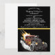 O convite para o casamento do incêndio da festa do Hot Rod tem uma chama laranja queimando e em volta de um carro velho. No fundo ao meio e um fundo preto com um lugar para colocar todo o seu texto de convite. Esta design única combina um convite formal de casamento com uma vibrante ilustração de haste quente. A parte superior apresenta detalhes para seu nome e seu nome celebração de casamento no "sábado, 18 de janeiro, 20XX" em Vancouver, BC. Abaixo, uma vareta quente poderosa e brilhante com motor exposto e tubos de escape acelerados, criando um impressionante contraste de temas. Tudo personalizável.