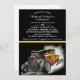 O convite para o casamento do incêndio da festa do Hot Rod tem uma chama laranja queimando e em volta de um carro velho. No fundo ao meio e um fundo preto com um lugar para colocar todo o seu texto de convite. Esta design única combina um convite formal de casamento com uma vibrante ilustração de haste quente. A parte superior apresenta detalhes para seu nome e seu nome celebração de casamento no "sábado, 18 de janeiro, 20XX" em Vancouver, BC. Abaixo, uma vareta quente poderosa e brilhante com motor exposto e tubos de escape acelerados, criando um impressionante contraste de temas. Tudo personalizável.