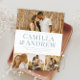 Um convite de casamento de fotos do tipo 4 com nomes grandes. Clique em editar para personalizar este design.