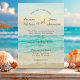 Apresentando uma design litorânea de uma cena de praia e uma elegante tipografia, este encantador convite dá o tom para sua inesquecível celebração com tema de praia. Quer você esteja planejando um casamento de destino ou simplesmente trazendo as vibrações à beira-mar para sua cerimônia, este convite para o casamento na praia é a maneira perfeita de anunciar seu dia especial para seus entes queridos.
