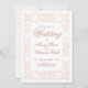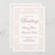 Um convite de casamento sofisticado, elegante, sutil e gentilmente personalizado, com um local branco em um quadro ligeiramente cor-de-rosa e fundo branco, com texto cor-de-rosa com sombra rosa mais escura. Você pode personalizar o convite de casamento para suas necessidades.
