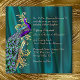 Chic Teal Satin parecendo um convite de casamento quadrado, com gráficos adoráveis de tom dourado florescem do lado esquerdo com um pavão colorido, no meio da decoração florescente. O texto em branco está pronto para personalizar o dia do seu casamento. Produtos correspondentes disponíveis.