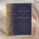 Convite para Casamento Elegante Dourado Azul Escur
