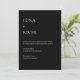 Suíte de casamento simples e na moda num estilo moderno de design minimalista com uma tipografia contemporânea em branco num fundo de Jet Black. O texto pode ser facilmente personalizado para um único design único para o seu dia especial.