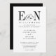 Casamento Elegante Negro e Branco moderno. Texto preto clássico sobre fundo branco. Apresenta uma linda noiva personalizável e iniciais de monograma de noivos com ampersand. Personalize com as iniciais do Monograma e o texto do casamento. Parte de trás personalizável mostrada em preto sólido. Convidamos você a visitar nossa loja Zazzle, GJ Design Co, para ver produtos correspondentes e muito mais.