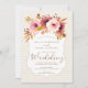 Este convite para o casamento está em um belo design de blush de boho sereno. Todo o texto é editável