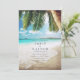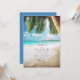Águas turquesas, design de casamento de areia branca e palmeira para seu destino tropical ou casamento de praia. Personalize o convite com seus detalhes de casamento.