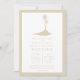 Um convite de casamento simples e moderno, com uma ilustração de cor de areia de uma ilha com duas palmeiras. Borda, texto personalizado e lado oposto também são areia.