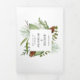 A nossa coleção "Casamento Verde Inverno" apresenta uma paisagem minimalista de pinheiros com cor d'água, excelente para a sua papelaria de casamentos. A fonte séria associada a uma fonte de script elegante é fácil de personalizar. Verifique em nossa loja mais itens desta coleção.