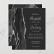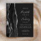 A borda esquerda deste elegante convite de casamento moderno apresenta uma coloração aquosa preta e borda agitada com falso brilho prateado. O texto personalizável combina manuscrito, fontes em copperplate e itálico em cinzas prateadas leves em um fundo fora do preto. O verso apresenta um design de agata preto e prateado correspondente.