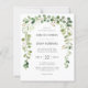 Este convite de casamento da na moda rustic apresenta uma delicada marca de cor d'água eucalipto verde. Personalize-o com os nomes dos casais e os detalhes do casamento na fonte da cinza de carvão. A parte traseira da placa é uma forma sólida de verde que corresponde ao design de aquarela.