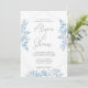 Elegante, convite de casamento boho apresenta uma fronteira geométrica moderna e folhas de eucalipto azuis empoeiradas. Personalize com seus detalhes de casamento com a fácil edição de modelo com uma fonte de script romântica e uma fonte moderna de sans serif. Verifique os itens correspondentes na coleção "Blue" Eucalyptus.