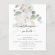 Bolso de Orçamento Florais Eucalyptus Convite para Casamento. Um alternativo de 4,5 pol x 5,6 pol com preço inferior. Disponível em um STOCK DE CARTÃO SEMI-GLOSS 110 lb, que é a opção padrão (mais espesso para convites), OU um STOCK de PAPEL THINNER FINISH 80 lb FINISH (ideal para gabinetes). Os envelopes são um extra opcional e são ligeiramente maiores que o tamanho da placa. Uma florada de flores boêmicas e folhas de eucalipto decora o topo com uma camada de gradiente e a tipografia parcialmente sobreposta e centrada abaixo da qual você pode facilmente personalizar. Um plano de fundo verde de sábio de coordenação está na parte de trás, que você pode mudar para outra cor se desejar por meio da opção personalizar mais.