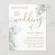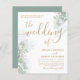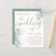 Este é um convite de casamento moderno e elegante para o 'casamento de' caligrafia em ouro sobre fundo branco, com a adição de elementos botânicos verdes sensuais. Fácil personalizar o texto para criar algo realmente exclusivo.
