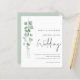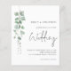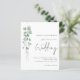 Um valor para o alternativo do ORÇAMENTO em tamanho menor de 4,5 x 5,6" de semirbrilho de 110 lbs, que é de espessura semelhante a um cartão postal (no entanto, não é adequado para uso como cartão postal). POR FAVOR, OBSERVE QUE HÁ UM convite por folha. Convite para Casamento Eucalyptus Elegante. Estilo botânico minimalista, com um roteiro manuscrito para o casamento e o resto do texto que você pode personalizar facilmente. Um galho elegante de folhas de aquarela eucalipto corre pelo lado esquerdo.