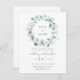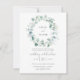 Belo convite para o casamento de eucalipto verde com bonito coroa feita de folhas verdes frescas de eucalipto. Este design elegante e arejado é perfeito para casamentos de primavera e verão.
