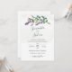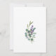 Este design apresenta uma ilustração aquarela de folhagem de eucalipto e flores lavandas roxas. no topo da placa - confetti de efeito esverdeado.