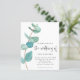 Casamento de Eucalyptus minimalista. Um alternativo de 4,5 pol x 5,6 pol com preço inferior. Disponível em um STOCK DE CARTÃO SEMI-GLOSS 110 lb, que é a opção padrão (mais espesso para convites), OU um STOCK de PAPEL THINNER FINISH 80 lb FINISH (ideal para gabinetes). Os envelopes são um extra opcional e são ligeiramente maiores que o tamanho da placa. Um elegante bando de folhas de eucalipto azuis flui do fundo à esquerda. Uma tipografia na moda em preto para o título principal de Casamento de complementar o resto do texto que você pode facilmente personalizar.