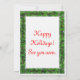 Buquê de inverno de folhas e bagas vermelhas em volta de um convite formal de casamento hospedado pelos pais da noiva, em duas linhas de texto. Simplesmente mude o texto para os pais do noivo, ou use apenas uma linha de texto para uma família anfitriã. A imagem também é repetida na parte traseira da placa, com uma mensagem de cartões de natal, ou você pode excluir a imagem e o texto completamente. Altere o estilo da fonte ao "Personalizá-lo".