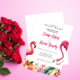 Apresentando ilustrações caprichosas de flamingos graciosos em meio a flores verdes e vibrantes, estes convites captam a essência de um casamento de destino romântico. Perfeito para casais que buscam um toque de charme exótico e elegância de quem dá para trás, cada convite é meticulosamente feito com atenção aos detalhes. Impressos em papel de alta qualidade, nossos convites prometem uma apresentação impressionante que dá o tom perfeito para seu dia especial.