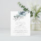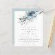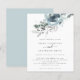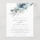 Convocação para o casamento de Florais de Natal moderno. Um alternativo de 4,5 pol x 5,6 pol com preço inferior. Disponível em um STOCK DE CARTÃO SEMI-GLOSS 110 lb, que é a opção padrão (mais espesso para convites), OU um STOCK de PAPEL THINNER FINISH 80 lb FINISH (ideal para gabinetes). Os envelopes são um extra opcional e são ligeiramente maiores que o tamanho da placa. Teal Natal e florais azuis em pó e folhagem fluem do topo e do texto elegante centrados abaixo. Personalize facilmente o texto para seus próprios detalhes.