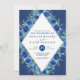 Marinho azul d'água, convite floral de casamento, em forma de diamante. Personalize nomes, datas e informações.