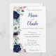 Convite para Casamento Floral Azul e Rosa Marinho