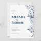 Convite para Casamento Floral Azul-Marinho Elegant