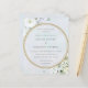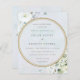 Hídrangas brancas e margaridas criam uma bonito fronteira floral ao redor dos seus detalhes de casamento. O fundo de aquarela azul macio mostra-os perfeitamente. Este elemento faz parte da coleção Casamento Floral de Cor Azul e Branca.