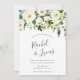 Nosso convite de casamento do Alabastro enquadra seus detalhes de casamento com uma borda superior de verde-aquarela pintada e folhagem pontilhada com peões e rosas brancos. Uma escolha moderna, porém orgânica, em verde e branco, com botânicos exuberantes e seus nomes em letra manuscrita.