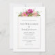 Uau, é o que seus convidados dirão quando receberem este convite pelo correio! Uma bela tipografia de tendências está rodeada por um adorável buquê de aquarela rosa. Este convite é perfeito para sua ocasião especial.